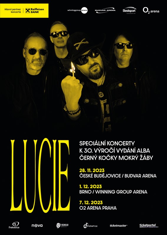 Na podzim příštího roku to bude třicet let, kdy kapela Lucie vydala dnes už ikonické album Černý kočky mokrý žáby, které Ceny Anděl označily za nahrávku dvacetiletí. K výročí Lucie připravila dárek pro své fanoušky. Na třech exkluzivních koncertech, které se už nebudou opakovat, odehraje celou desku živě od začátku do konce. Koncerty se uskuteční 28. listopadu v Českých Budějovicích, 1. prosince v Brně a 7. prosince v Praze. Půjde o jediné samostatné koncerty kapely v roce 2023 i 2024. Kromě alba Černý kočky mokrý žáby na nich Lucie odehraje i své další hity napříč celou tvorbou. Na pódium si kapela přizvala hosty, připojí se třeba zpěvačka Lenka Dusilová a poctu společně vzdají producentovi alba Ivanu Královi. Publikum se může těšit na speciální scénografii a vizuály koncertu inspirované deskou.