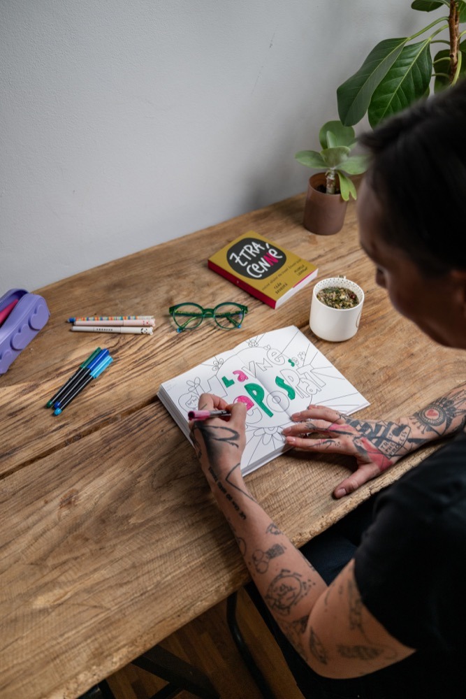 „Propoj hlavu se srdcem pomocí tužky. Piš, čmárej, škrtej, kresli, maluj, trhej. Anebo se jen tiše obejmi a nedělej nic. Vydej se na cestu po své vnitřní krajině. Ať už hledáš odpovědi, nebo otázky, tenhle arteterapeutický zápisník tě povede. Bude tě vlídně doprovázet na pouti po tvé minulosti, současnosti i budoucnosti a dovede tě zpátky k sobě samé. Vytvoří ti prostor, ve kterém budeš chvíli opečovávat jen sebe, a umožní ti místo čtení cizích příběhů konečně prozkoumat ten svůj,“ slibují autorky v anotaci.