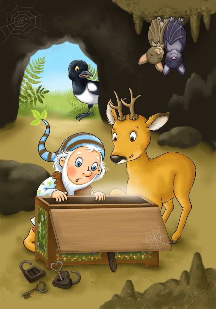 O skřítkovi Dundovi, který hlídá poklad všech lesních skřítků. Jenže poklad je v truhle a on neví, co truhla skrývá. Víc říkat nebudu. Snad jen doplním to, že děti mi píší, že se jim knížka líbí, protože je napínavá.