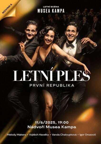 Nostalgickým i nespoutaným návratem do historie bude následující Ples první republiky ve středu 11. června. Nádvoří se promění v taneční sál jako vystřižený z meziválečné éry, na pódiu to náležitě rozjedou legendární Melody Makers s Vojtěchem Havelkou. Spolu s ním se představí Igor Orozovič, Vanda Chaloupková a další herci spojení s Letní scénou Musea Kampa. Návštěvníci budou nejen tančit v rytmu swingu 20. a 30. let a ochutnávat dobové občerstvení, ale také se prostřednictvím imerzivního divadla stanou aktivní součástí příběhu, který se bude odehrávat všude kolem!