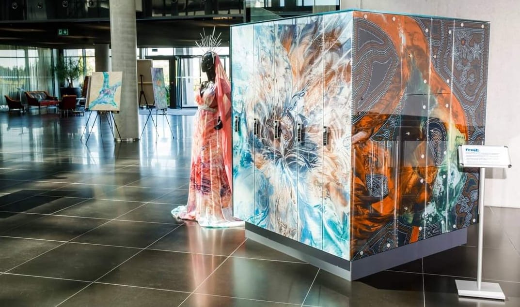 Během slavnostního večera si návštěvníci mohli prohlédnout instalaci keramického tisku na sklo, za kterou stojí výtvarnice Markéta Meduna Kočková z Aglaia Design a firma Frajt Image Glass.