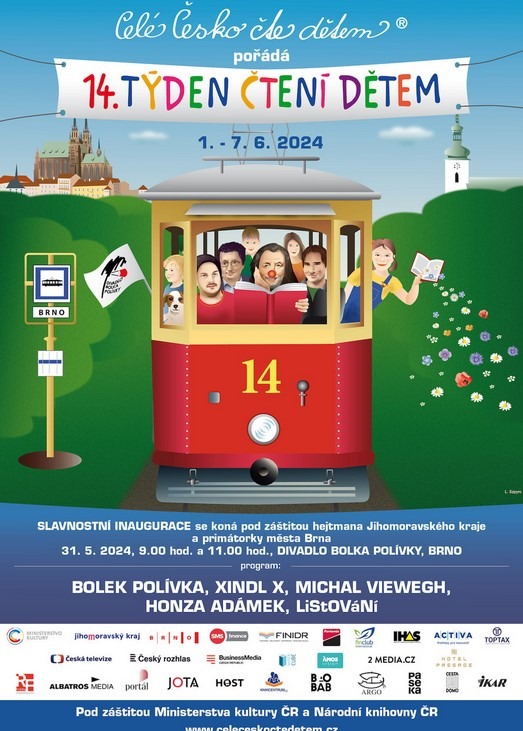 Slavnostní zahájení čtrnáctého ročníku Týdne čtení dětem v ČR, který pořádá Celé Česko čte dětem, se letos odehraje v Brně, v Divadle Bolka Polívky, a to již 31. května. Následně se díky zapojeným institucím uskuteční v městech a obcích po celé zemi. Bude se číst, vyprávět, tvořit, zpívat, hrát a sdílet radost ze společného čtení. Pozvání na slavnostní inauguraci přijali herec Bolek Polívka a spisovatel Michal Viewegh. O hudební vystoupení se postará známý zpěvák Xindl X. Součástí programu bude také oblíbené scénické čtení LiStOVáNí. Programem provede diváky moderátor Honza Adámek.