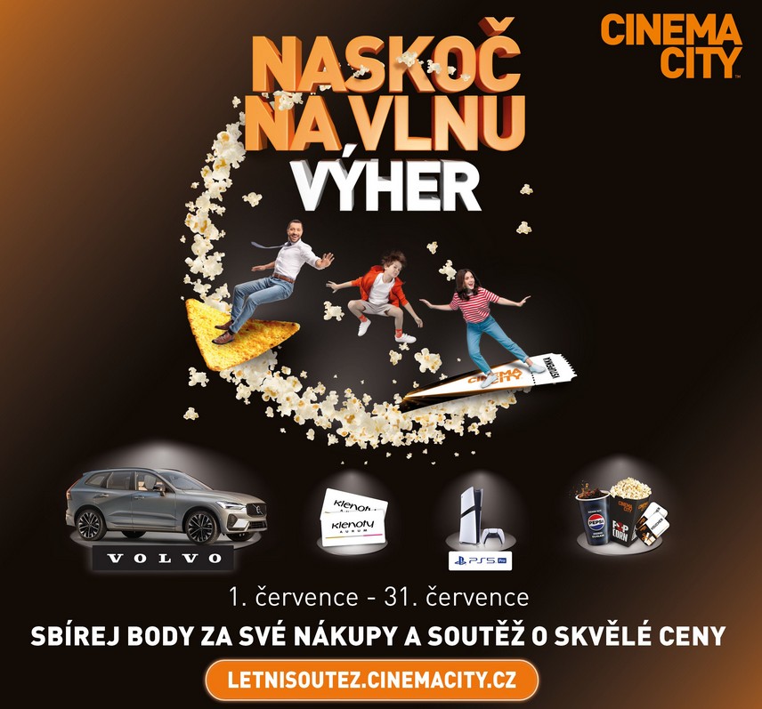 Letní soutěž v multikinech Cinema City je zpět! Stejně jako v minulých ročnících, tak i letos láká návštěvníky nejen na filmy, ale i na dárky. Každý nákup vstupenek nebo občerstvení se mění na body, za které si diváci okamžitě vybírají své odměny. V průběhu července se navíc soutěží o atraktivní výhry od partnerů, jako je půjčení vozu Volvo XC60, herní konzole PlayStation®5 Pro nebo různé dárkové poukazy.