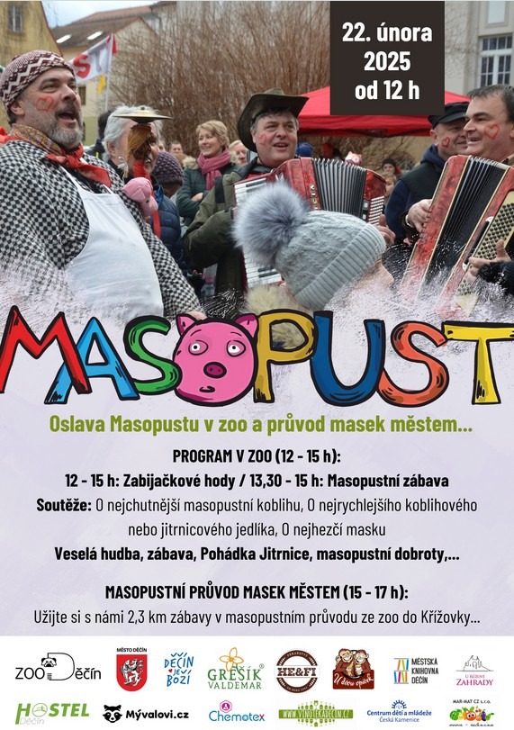 Děčín již brzy ožije oslavami Masopustu! Na odpoledne plné veselí, hudby, tanečků, dobrého jídla a taškařic se mohou obyvatelé Děčína a okolí těšit již v sobotu 22. února. Tradiční akci plnou veselé nálady pořádá děčínská zoologická zahrada.