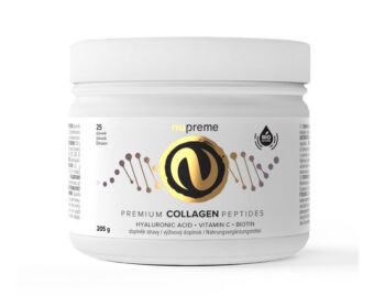 - Nupreme Collagen Harmony Box, který obsahuje 2× Premium Collagen Peptides a 6× proteinovou tyčinku s kolagenními peptidy (699 Kč)