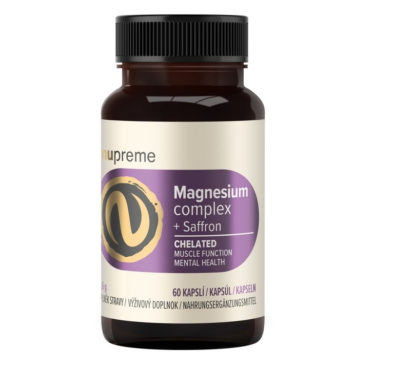 Když je stresu víc než dost a relaxace je spíš vzácným svátkem, organismus vyčerpává zásoby hořčíku, aby všechnu tu zátěž vybalancoval. Doplňte jej efektivně a tou nejpřirozenější cestou – v bioaktivní organické formě, pomocí chelátů. Magnesium + šafrán chelát od Nupreme obsahuje tři typy hořčíku. Bisglycinát regeneruje svaly a snižuje stres. Treonát proniká do nervových center, podporuje kognitivní funkce a zklidňuje. Taurát podporuje zdraví cév a celý kardiovaskulární systém. Doplněný o synergicky působící vitamín B6 a standardizovaný extrakt ze šafránu, oblíbenou bylinku našich předků pro podporu emocionální pohody, se postará o váš klid. Složení bez zbytečných přídatných látek, plnidel a barviv vám přináší maximální účinek a víc než 90 % vstřebatelnost minerálních látek.
