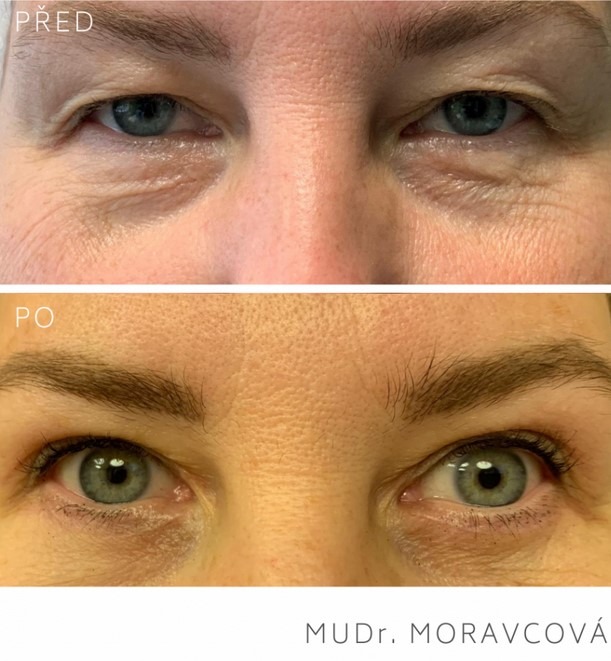 Tím, že se ubere kůže na víčku, pomůžeme otevření oka a vyhladíme kruhy pod očima. Redukcí tukových polštářků mizí i otoky. Efekt není ale samozřejmě jen estetický – výrazně se zlepší či úplně zmizí tlak na víčko, řezání a pálení v očích, a oči nejsou tolik unavené.