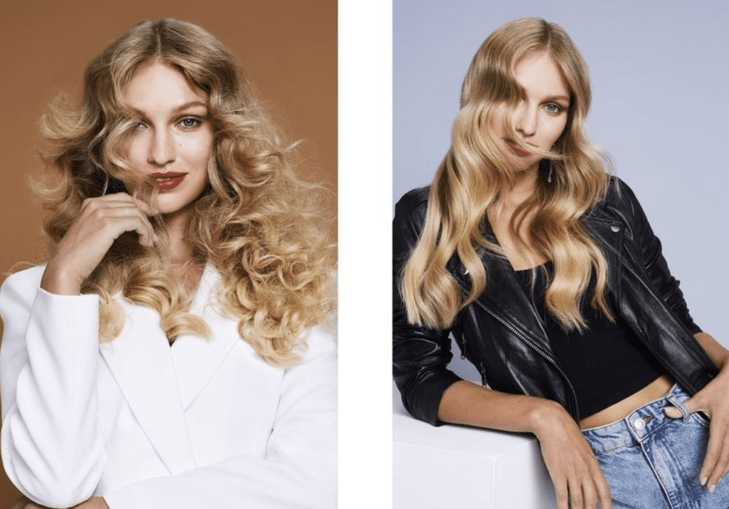 Velké vlny a tmavší kořínky s prosvětlenými konečky v teplém odstínu vytvářejí nevšední a moderní styl pro každou příležitost. Nosit se dají ve variantě s výrazným objemem u kořínků nebo ve sportovně elegantním stylu s měkkými vlnami.