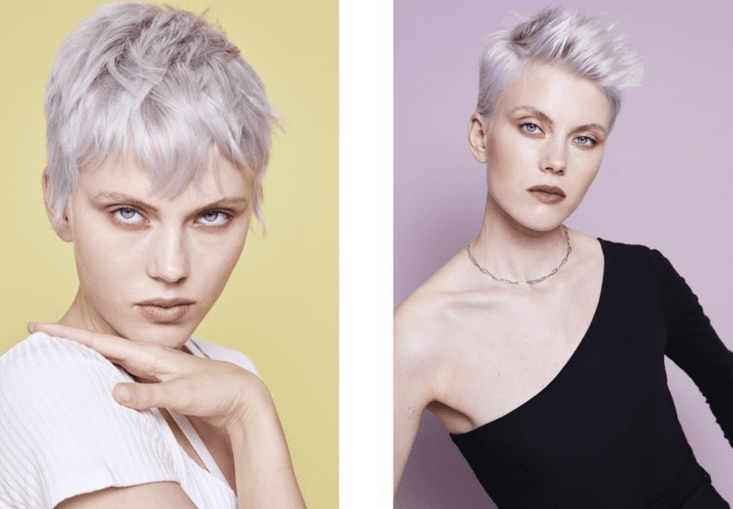 Střih pixie je sebevědomý, cool a také velmi univerzální. Ofina je střižená tak, aby při stylingu umožňovala různé variace. První look působí jemně a žensky, ve druhém díky ofině vyčesané nahoru vyniknou rysy obličeje.