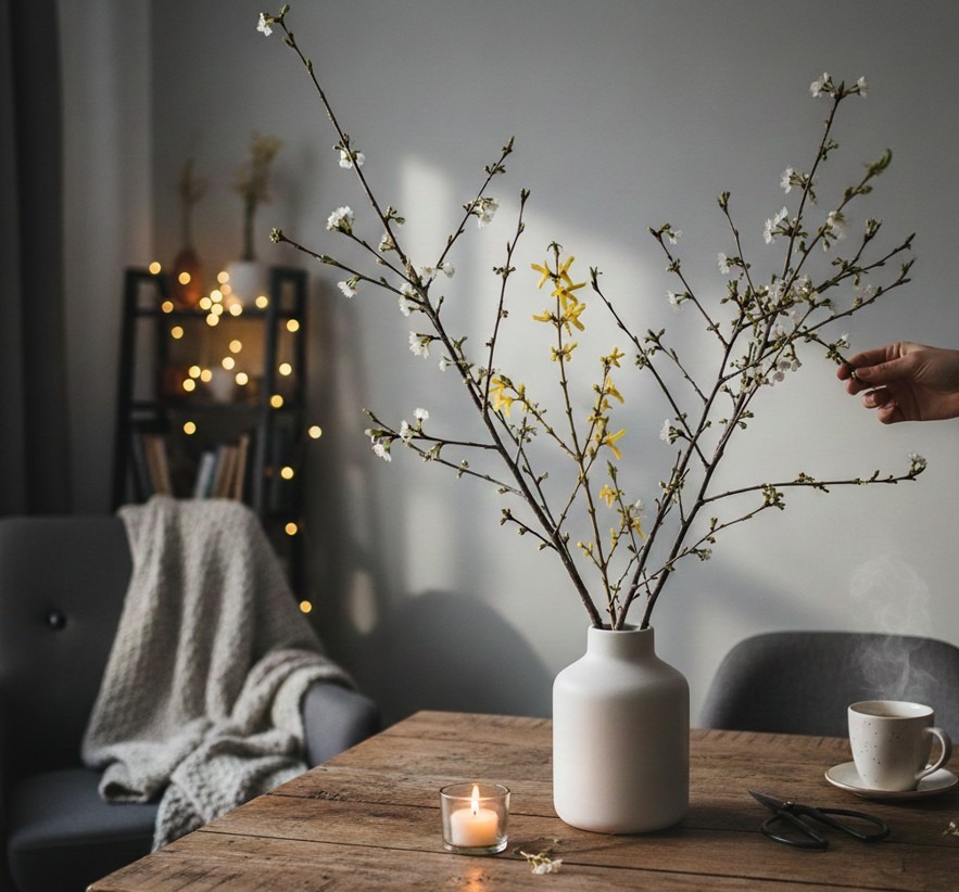 Cílem je přinést do domu kousek spící přírody. Vložením suché, mrazem zkřehlé větvičky do vázy s vodou a umístěním do tepla provádíme mini-rituál vzdoru zimě. Nejde jen o dekoraci, ale o záměr: V nejtemnějším období roku, kdy se vše stahuje do sebe, nutíme život, aby se projevil.