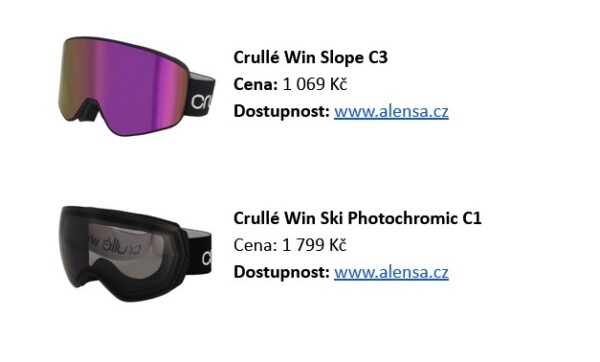„Při zimních sportech dochází k výraznému zvýšení expozice UV záření v důsledku jeho odrazu od sněhové plochy. Zároveň jsou oči vystavené silnému proudění vzduchu, nízkým teplotám a rychlým změnám kontrastu. Optimální sportovní brýle by proto měly kombinovat 100% UV ochranu, kvalitní antireflexní úpravu, úpravu proti zamlžování a ergonomické usazení, které minimalizuje únik světla i proudění studeného vzduchu k povrchu oka,“ radí optometristka Sandra Klimešová z e-shopu Alensa.cz