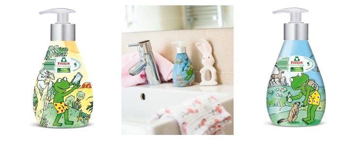 ekologické tekuté mýdlo pro děti je speciálně vyvinuté pro jemnou dětskou pokožku. Mýdlo s přírodním složením s neutrálním pH 5,5 pokožku jemně čistí, pečuje o ni a zanechává ji provoněnou příjemnou vůní. To, že je mýdlo vhodné i pro děti s citlivou pokožkou, potvrdily dermatologické testy. Děti si navíc zamilují hravý design dávkovače s veselými žabkami v několika variantách. Doporučená cena výrobku je 81,90 Kč.