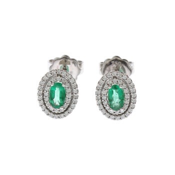 Do sady, ale i samostatně lze z nabídky starožitnictví vybrat elegantní náušnice z bílého zlata se smaragdy a brilianty. Drobné diamanty briliantového brusu lemují centrální přírodní smaragd typicky jasně zelené barvy.
