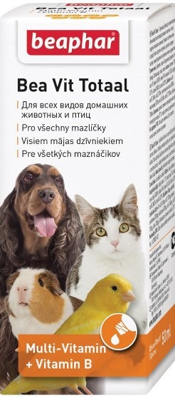 V zimním období je dobré nezapomínat na celkovou podporu imunity. Využít můžete například vitaminové kapky Bea Vit Totaal s komplexem nezbytných vitaminů, které jsou vhodné nejen pro psy, ale také pro ostatní domácí mazlíčky.