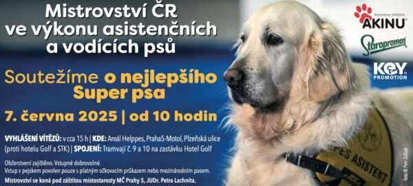 V sobotu 7. června 2025 se ve výcvikovém areálu organizace Helppes v Praze 5 – Motole utkají lidé s nejrůznějšími typy postižení se svými perfektně vycvičenými psími pomocníky o titul Mistra České republiky ve výkonu asistenčních a vodících psů. Mistrovství je jedinou soutěží tohoto druhu nejen v ČR, ale i na světě. Na co se můžete těšit? Na chvíle plné inspirace, dobré nálady a pozitivní energie!