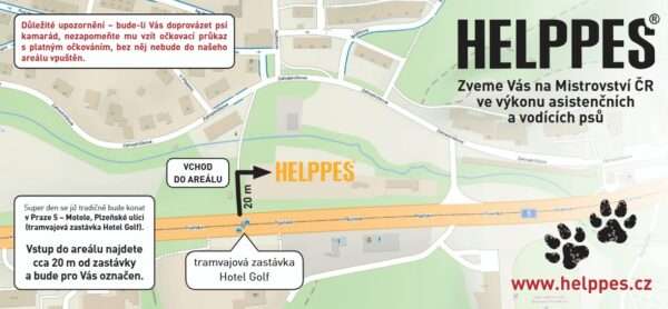Přijďte se pobavit, strávit čas v příjemné atmosféře a podpořit všechny soutěžící s jejich psími asistenty. Budeme se na vás těšit ve výcvikovém areálu Helppes v Praze 5 – Motole. Soutěžení začíná v 10 hodin a vyhlášení vítězů proběhne kolem 15 hodiny.