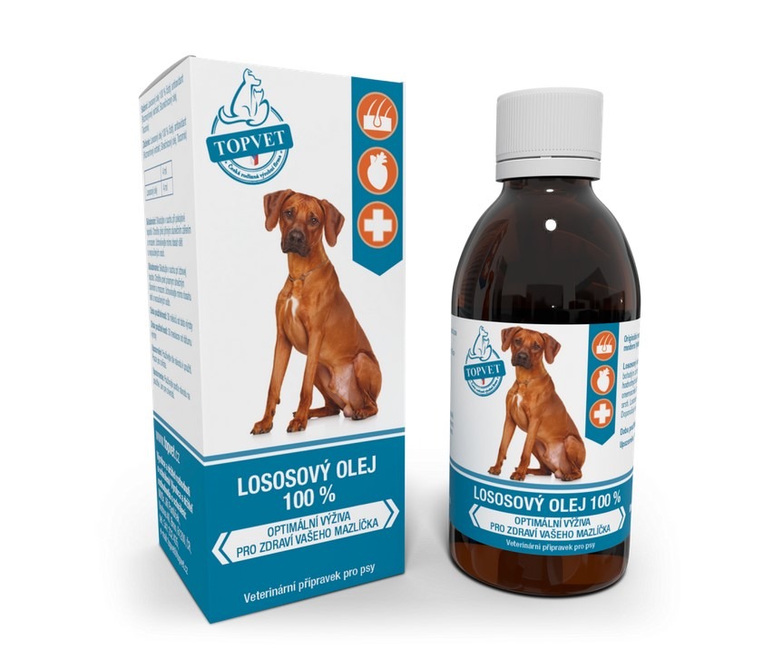 Lososový olej je bohatým zdrojem Omega 3, 6 nenasycených mastných kyselin a dalších hodnotných látek. Při pravidelném používání snížíte riziko kardiovaskulárních onemocnění, snížíte hladinu cholesterolu v krvi, významně zlepšíte kvalitu srsti. Lososový olej má pozitivní vliv na fungování imunitního systému. Doporučuje se při problémech s reprodukcí.