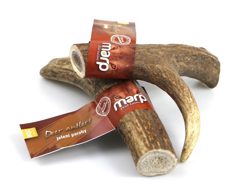 Vybrat můžete také pamlsek, který je zároveň hračkou. Jelení paroh je pamlsek, který je bohatý na minerální látky jako jsou vápník, fosfor, železo, hořčík nebo draslík, a to v přirozené formě, a který psa při žvýkání na dlouho zabaví. Shozené jelení parohy jsou pouze upraveny a nařezány tak, aby neměly ostré rohy a pes je mohl kousat. Zároveň se tak čistí jeho chrup a posilují dásně, takže slouží jako dentální pomůcka. Jelení parohy jsou k dispozici ve 4 velikostech – S, M, L, XL, podle hmotnosti, a proto je vybírejte podle velikosti plemene. K dostání jsou od 99 Kč na www.krmiva-pucalka.cz