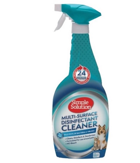 Revoluční dezinfekční přípravek Simple Solution. Hravě likviduje 99,9 % bakterií a virů včetně koronaviru, kočičího kalciviru, chřipky typu A, E. coli, Listerie nebo MRSA. Neobsahuje alkohol ani bělidlo, je tedy bezpečný lidem i zvířatům. Více informací na spokojenypes.cz.