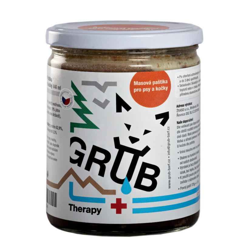 Každý živý organismus, včetně našich domácích mazlíčků, přestává ve vyšším věku produkovat dostatečné množství určitých látek. Je dobré je tělu dodat, tak abychom nejenom prodloužili jejich život, ale i jej zkvalitnili. Takovým výrobkem, který je vhodný pro seniorní věk našich domácích mazlíčků, a to pro svoji konzistenci i svoje složení, je Paštika Grub Barf pro psy a kočky. Jedná se o jemné krmivo, které lze využít i jako doplněk stravy. Díky vysokému obsahu Taurinu je paštika vhodná zejména pro kočky, které si tuto aminokyselinu nejsou schopny ve svém těle vyrobit. Paštika obsahuje rovněž vysoký podíl kolagenu, který výrazně přispívá dobrému stavu kostí. Zajišťuje krásnou a lesklou srst, zdravý vývoj a prevenci proti opotřebení kloubů, šlach a celého pohybového ústrojí zvířete. Kolagen je jedna z nejdůležitějších bílkovin. Působí jako lepidlo buněk, stará se o pružnost tkání, zabezpečuje elasticitu kůže a tvoří podstatnou část chrupavek. Vlastní tvorba kolagenu se zpomaluje s přibývajícím věkem zvířat, není přesná věková hranice, je to vysoce individuální záležitost. Proto je potřeba kolagen do stravy přidávat a podpořit tím tak jeho tvorbu. Krmivo Grub BArf si navíc udrží svá bioaktivita tedy, že se při výrobě zachovají potřebné enzymy, minerály a vitamíny. V extrudovaném suchém krmivu nebo v masových konzervách jsou vitamíny uměle dodávány. Tyto laboratorně vyrobené suplementy mají mírně odlišnou chemickou vazbu a tím pádem i menší efekt než vitamíny „živé“. Psi a kočky krmení BARFem produkují navíc méně exkrementů, a to díky velké využitelnosti potravy. Pravidelné drcení a pojídání kostí zase například udržuje v dobré kondici i jejich zuby. Uvádí se také, že zvíře na syrové stravě nemívá tak často potíže s parazity, má zdravější srst a je vitálnější.