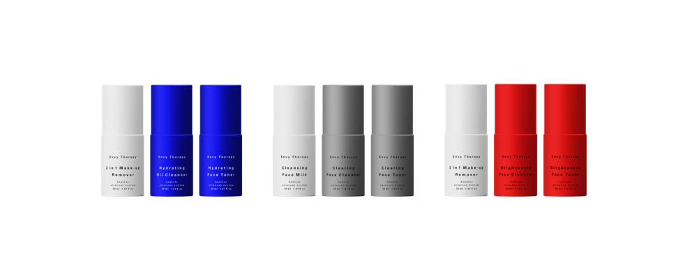 V novém designu se rovněž představují tak zvané trial kits, které umožňují efektivně vyzkoušet jednotlivé produkty pro první krok rutiny (čištění) Envy Therapy či slouží jako oblíbené cestovní balení.