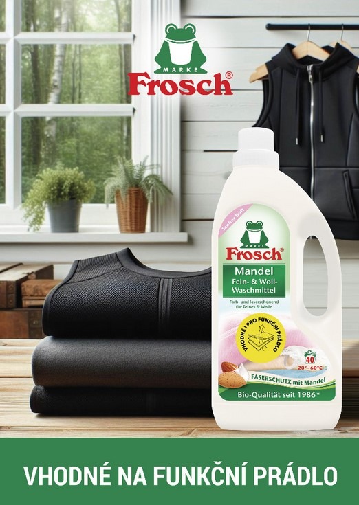 Slunce, svěží jarní vzduch, kvetoucí příroda, prodlužující se dny a blížící se doba dovolených. Co víc by si mohl člověk přát. Jarní dny a nastupující léto nás vybízí i ke zvýšené fyzické aktivitě a době strávené venku v přírodě na túře nebo na kole. To vše nám prospívá a dělá jednoznačně dobře jak tělu, tak naší psychické stránce. Aby byl pobyt v přírodě dokonalý a co nejpříjemnější, je dobré volit i správné outdoorové oblečení a funkční prádlo. Poměrně rychle jsme si ho zvykli používat. Není nám nepříjemné, když se zpotíme, protože toto prádlo odvádí pot. A není nám chladno, pokud se změní teplota, protože nás naopak funkčně zahřeje. Naše šatníky se těmito kousky poměrně zaplnily. Jak ale o ně správně pečovat? Dopřejte svému prádlu výjimečnou péči s ekologickým pracím prostředkem s mandlovým olejem. Frosch EKO prací prostředek s vůní mandlí s účinným přírodním složením se skvěle postará o jemné materiály, ke kterým patří například vlna, hedvábí nebo umělé hedvábí, a hlavně funkční prádlo. Lze ho používat jak v teplé vodě při praní v pračce, tak při ručním praní v terénu klidně s použitím studené vody. Důležitý je také fakt, že jeho užití v přírodě ji nezatěžuje. Jedná se o ideálního pomocníka na všech našich cestách létem za jakýmkoli dobrodružstvím.