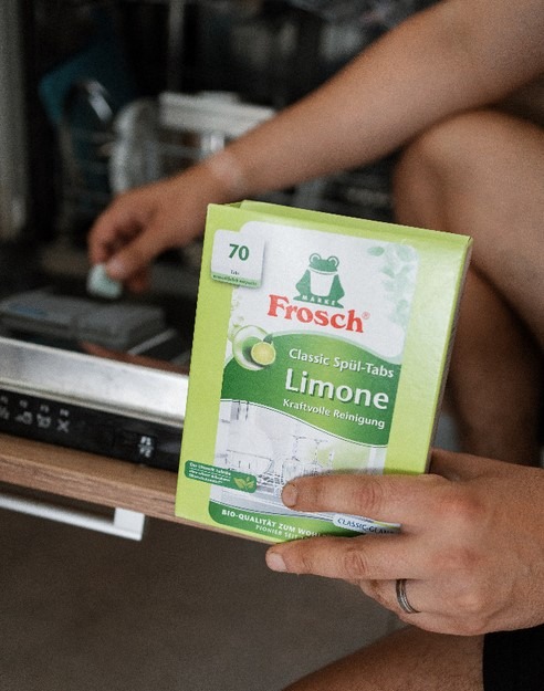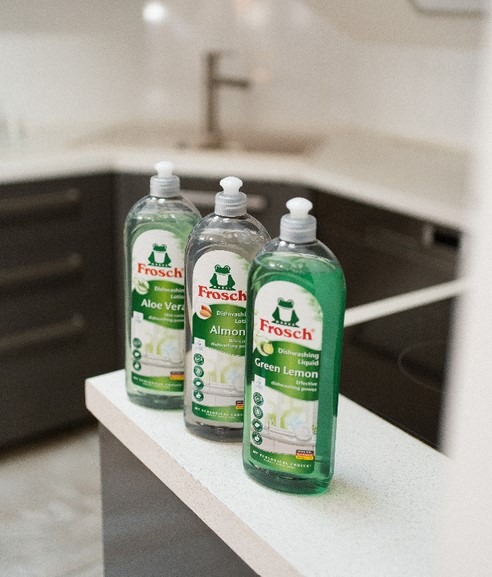 Značka Frosch zahrnuje i řadu ekologických prostředků na mytí nádobí. Získají si vás svou účinností i přírodním složením. K dispozici jsou jak prostředky určené na mytí nádobí v ruce, tak také prostředky do myčky. Všechny jsou maximálně šetrné k vaší pokožce. Tablety do myčky odstraní mastnotu i nečistoty a nádobí se leskne. Prostředky pro ruční mytí jsou efektivní při minimálním dávkování. Krásně voní a vaši kuchyň zanechají čistou a svěží. Ekologické prostředky na mytí nádobí do své řady přibírají i novinku v podobě Frosch gel do myčky s vůní limetky. Gel je vyroben z přírodních evropských zdrojů a obal má praktický rozměr. Práce s těmito pomocníky vám půjde pěkně od ruky.