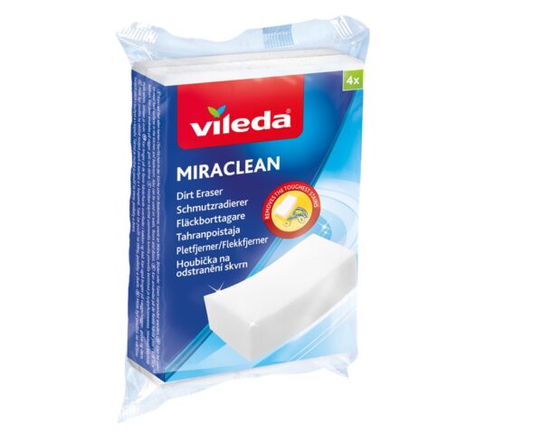 Zázračná houbička pro snadné odstraňování skvrn z většiny tvrdých povrchů pouze vodou. Není potřeba použití chemických prostředků. Tato houbička Vileda snadno odstraňuje skvrny od čaje, kávy, pera nebo vodní kámen. Může být použitá na většině tvrdých ploch v kuchyni a v koupelně. Lze ji použít také na stěny. Je složená ze 100% pryskyřice a čistí pouze vodou.