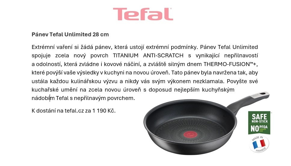 Vybrat správnou pánev na vaření je stejně důležité jako výběr ingrediencí pro vaše kulinářské umění. Hlavními kritérii bývá nepřilnavost, velikost i tvar nebo třeba některé chytré funkce. V tomto článku se ponoříme do světa pánví a pánviček a prozradíme několik jednoduchých tipů, jak si mezi nimi vybrat. “Dobrá pánev je základem úspěšného vaření. Kvalita materiálu přímo ovlivňuje nejen chuť a texturu vašich jídel, ale také usnadňuje přípravu pokrmů a zajišťuje snadnější údržbu. Investice do vysoce kvalitního materiálu se vám vrátí dlouhou životností, ale i tím, že vaše vaření může být díky kvalitní pánvi zdravější,“ zdůrazňuje Jakub Švajgl, Product manager Tefal.