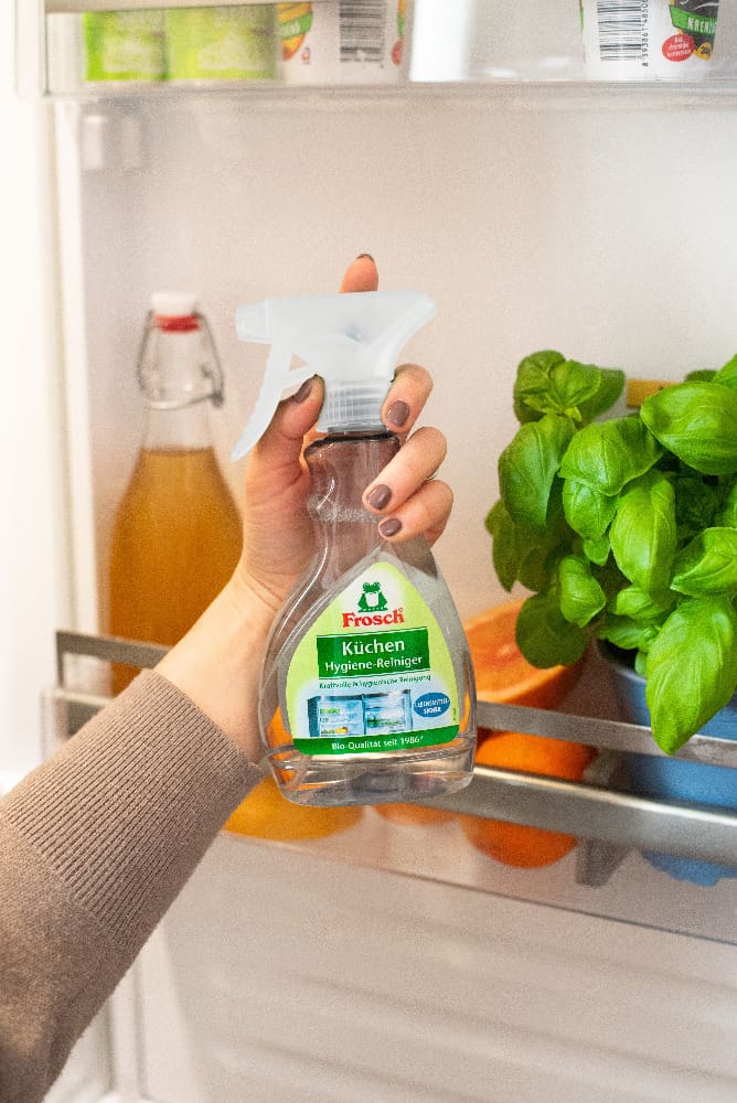 Jalovec účinně působí proti bakteriím a je navíc bezpečný pro použití v blízkosti potravin, což je v kuchyni samozřejmě obzvláště důležité. Účinně likviduje nečistoty, živnou půdu pro bakterie a pohlcuje pachy. Dokonale očistí všechny kuchyňské plochy – v lednici, mikrovlnné troubě, krájecí prkénka a další pracovní plochy. Nejvhodnější pro tyto účely je Frosch EKO Hygienický čistič lednic a jiných kuchyňských povrchů 300 ml, dop. 109,90 Kč.