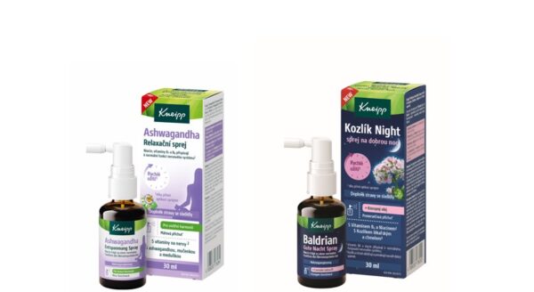 Doplňky stravy: Ashwagandha sprej na relaxaci 30 ml, 249 Kč, Kozlík Night sprej na dobrou noc 30 ml, 249 Kč, vše Kneipp