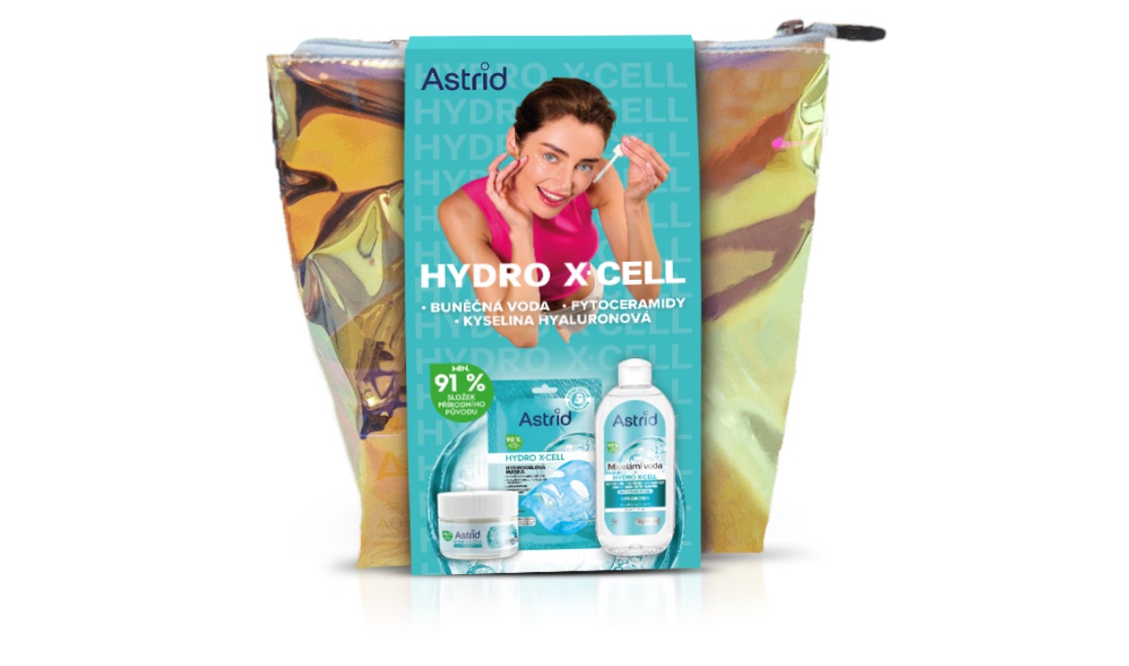 Nová řada Astrid HYDRO X∙CELL je určená pro péči o mladou pleť 20+. Klíčový je vysoký podíl složek přírodního původu, a to minimálně 91 %, hydratační vlastnosti a posílení kožní bariéry. Produkty obsahují mnoho aktivních složek jako buněčnou vodu, fytoceramidy nebo kyselinu hyaluronovou, které pomáhají s tím, aby byla mladá pokožka dokonalá. Vánoční balení obsahuje denní krém, micelární vodu a gelové oční polštářky.