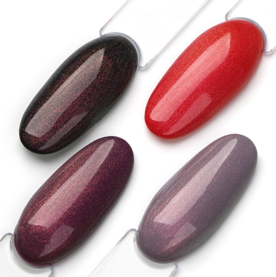 Efekt hluboké manikúry. Pigment ve složení se plynule přechází od červené přes růžovou až po zelenou.