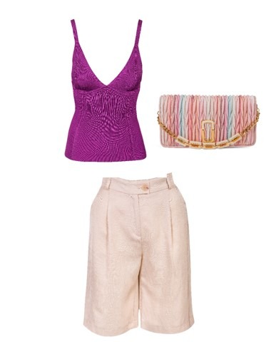 Užijte si poslední teplé letní večery plné radosti a pohody v luxusním a zároveň pohodlném outfitu. Jak na to? Bermudové šortky v pánském střihu jsou jedním z nejžhavějších trendů letošní sezóny, ideálně z příjemné směsi bavlny a viskózy. Zkombinujte je s topem v krásném fuchsiovém odstínu s hlubokým výstřihem a úzkými ramínky. Celý look doplňte mini prošívanou kabelkou v pastelových barvách s maximalistickým zlato-perleťovým detailem. K bermudám přidejte ještě elegantní lodičky s otevřenou špičkou na vysokém podpatku nebo vysoké tenisky pro uvolnější street look.