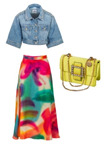 Festivaly jako tvořené pro módní experimentování. Oblékněte batikovanou sukni ve stylu sedmdesátých let v oblíbeném midi áčkovém střihu. Zkombinujte ji s cropped denim bundou zdobenou kovovými cvočky a neotřelými rozšířenými rukávy, které outfitu dodají rebelský nádech. Ideální obuví na festival nebo koncert ve městě budou mule – nazouvací boty s otevřenou patou, které jsou stylové a snadno se obouvají. Pro dokonalý festivalový outfit přidejte doplňky v podobě zlatých kruhových náušnic, vrstvených náhrdelníků nebo neonové kabelky s důmyslnou sponou.