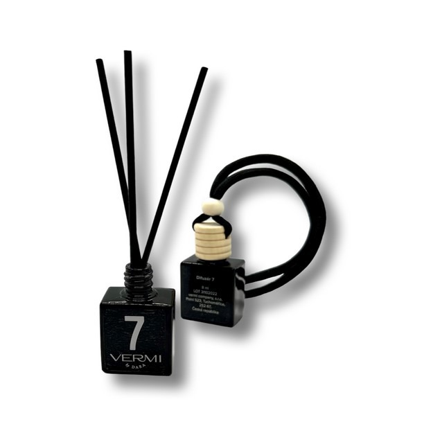 Svazku bílých květin obsažených právě ve vůni „7“ dominuje opojná tuberóza, která si každého podmaní. Exotický ylang-ylang, jasmín sambac, bílé pižmo, kokos a něžné květy pomerančovníku dodají pak oblíbenému interiéru skvostný kořeněný nádech a podoba mini-difuzéru vám dovolí mít tuto vůni vždy s sebou, kde budete jen chtít. Doma, na cestách nebo v autě. V balení najdete praktické poutko v podobě tkaničky černé barvy upevněné na dřevěném víčku pro zavěšení do auta, ale i mini tyčinky, které jednoduše vložíte do otevřené lahvičky a provoníte menší místnosti.