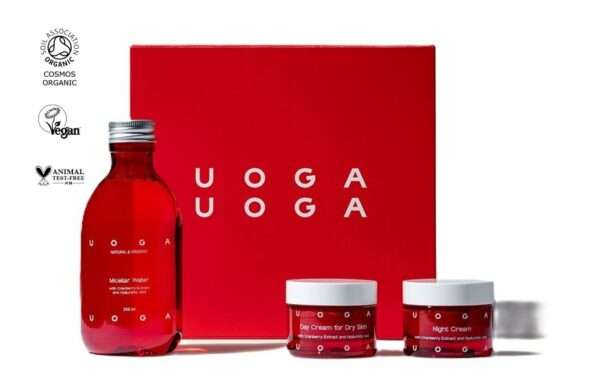 UOGA UOGA Sada pro každodenní péči o obličej Everyday Beautiful pro unavenou pleť. Obsahuje Intenzivní denní krém pro suchou pleť s kyselinou hyaluronovou, extraktem z brusinek a fytosteroly, které pomáhají zlepšit pružnost pleti. Díky dokonalému organickému složení získal nejvyšší hodnocení v mezinárodní kosmetické soutěži. Intenzivní noční krém pro suchou pleť s kyselinou hyaluronovou, výtažkem z brusinek, fytosteroly a bohatší konzistencí, který přes noc zvyšuje pružnost pleti. Micelární voda s kyselinou hyaluronovou odstraňuje z pleti make-up a nečistoty.