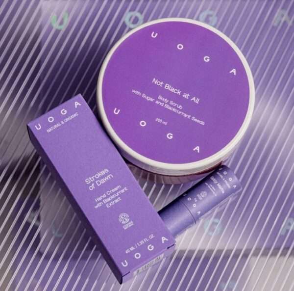 UOGA UOGA Dárková kolekce péče o tělo s černým rybízem Violet set s černým rybízem obsahuje tělový peeling, vyživující krém na ruce a balzám na rty.