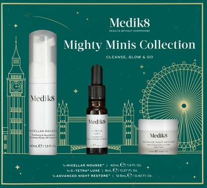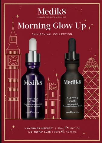 Vánoční balíček Medik8 Morning Glow Up dodá suché, dehydratované nebo unavené pleti dávku hydratace a energie. Kolekce obsahuje rehydratační hyaluronové sérum Hydr8B5 Intense a k tomu intenzivní sérum s vitaminem C C-Tetra Luxe, které pokožku rozjasní a s pravidelným používání vyhladí vrásky, zpevní její kontury a zesvětlí tmavé skvrny. Pokud vaší pleti po ránu chybí „šťáva“, vsaďte na Morning Glow Up.