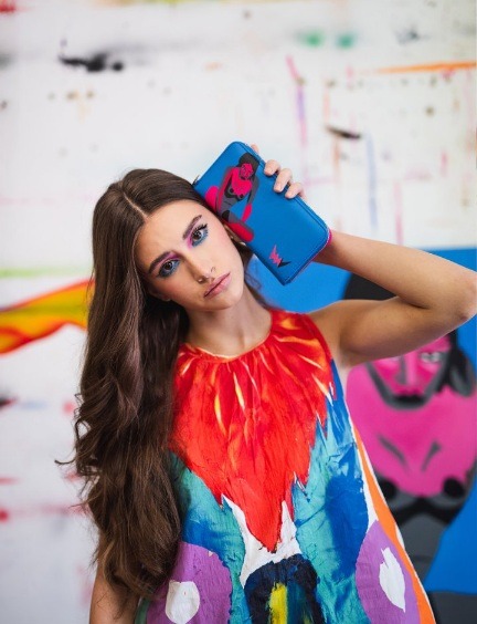 Peněženky jsou vyrobeny ve třech provedeních. Na každé ožívají jeho obrazy plné emocí a barev. Design oslavuje moderní ženskost a její krásu v každém detailu a každý kousek je malým uměleckým dílem.