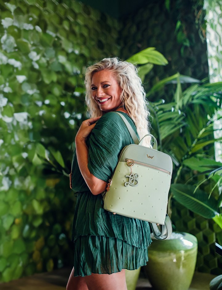 Pokud milujete hravost a lehkost, Lora je je přesně pro vás. S jemnými puntíky a svěží zelinkavou barvou je tento batůžek plný optimismu. Zlaté kování a ikonický monogram Lucie Borhyové dodávají tomuto roztomilému kousku elegantní šmrnc. Ideální na každodenní nošení, které bude bavit. Tento elegantní batůžek má odnímatelnou klíčenku s iniciály LB a vytlačený vzor puntíků. Limitovaná edice, vyrobeno 70 kusů od každé barvy – zelená, růžová, černá a multicolor.