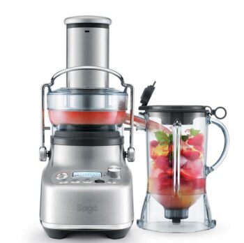 Nemůžete se dočkat prvního smoothie nebo šťávy, ale stále vám chybí ten pravý pomocník? Stolní odšťavňovač a mixér SJB815 značky Sage jako jediný na trhu kombinuje tři výrobky v jednom: standardní mixér, smoothie mixér a odšťavňovač. Jedná se tak o všestranný domácí spotřebič pro přípravu zdravých drinků v té nejvyšší možné kvalitě. Je vybavený vakuovým nástavcem, speciálním nožovým systémem Kinetix a intuitivním ovládáním. Materiál tritan, ze kterého je přístroj vyrobený, je odolný proti nárazu a poškrábání. Vydrží extrémní zátěž i opakované mytí v myčce. Robustní kovová základna navíc zajišťuje velmi tichý chod bez vibrací.