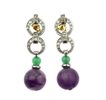 ART DECO NÁUŠNICE S DIAMANTY, AMETYSTY A CHRYZOPRASY