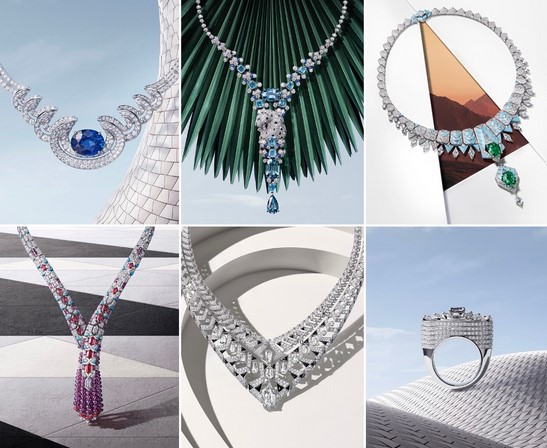 Kolekce je na první zastávce své inspirativní cesty uvedena v počtu více než osmdesáti unikátních šperků, jejichž základ tvoří série náhrdelníků. Oživení neživého, oproštění se od všeho statického, kompozice náhrdelníku Sama s 19,27karátovým cejlonským safírem, inspirovaného pohybem vířících dervišů, se pyšní silným vizuálním dojmem. Spirálovitá řada křivek a oblouků přináší působivý pocit pohybu. Objemný design šperku přerušují arabesky, na jejichž povrchu tančí světlo. Pro šperky Cartier začíná vše u kamenů, které vyvolávají emoce a pocit výjimečného. Středobodem prstenu Ondule je 0,92karátový šedofialový diamant obklopený diamanty ve tvaru půlměsíce, dodávající prstenu tajemnou svatozář. Barvou i váhou výjimečný drahokam je zakomponovaný do miniaturní struktury, jako světelný vír, přerušovaný reliéfem a objemem.