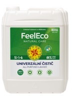 FeelEco Univerzální čistič je pravou volbou pro každý úklid. Komplexní přípravek je vysoce účinný, takže si hravě poradí se všemi nečistotami. Použít jej můžete na všechny typy omyvatelných povrchů. Složení výrobku s 97% podílem přírodního původu bylo pečlivě vyvinuto tak, aby přípravek byl účinný a pomáhal tvořit zdravý domov i životní prostředí. Sáhnout můžete po praktickém velkém balení s objemem 5 l, díky němuž budete mít dostatečnou zásobu a univerzální čistič vždy při ruce. Navíc přispějete k úspoře plastu o 44 % oproti menšímu balení, a cena je v přepočtu o 16 % nižší.