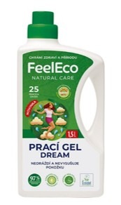FeelEco Prací gely Color a Fresh jsou maximálně výkonné v péči o světlé, barevné a černé prádlo, a přitom nedráždí a nevysušují pokožku. Barvy na oblečení zůstanou dlouho jako nové a můžete je bez starosti použít i na praní funkčních a sportovních kousků v šatníku. Díky unikátnímu složení s 97% podílem přírodního původu nemusíte řešit dilema, zda odstranit skvrny z oblečení a zachovat krásné barvy anebo raději brát ohled na zdraví a vyhnout se silným parfemacím s množstvím alergenů. Vyzkoušet můžete novinku FeelEco Prací gel Dream, který lze také použít na všechny barvy. Aktivní složky jsou rostlinného původu, jejich účinná kombinace je vhodná i pro osoby s citlivou pokožkou.