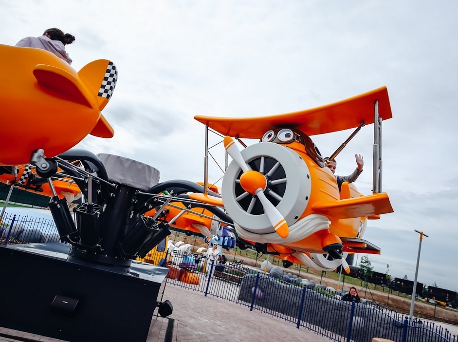 „Tematicky venkovní část koresponduje s tím, že se nacházíme hned vedle mezinárodního letiště Václava Havla,“ popisuje ředitel parku Miroslav Ducháč. Kromě rozsáhlé vnitřní části s mnoha atrakcemi, jako je 220 m dlouhá horská dráha, obří řetízkový kolotoč, volný pád nebo autodrom, si děti mohou atrakce s motivy Včelky Máji nebo oblíbených hrdinů Superwings užít za každého počasí. Vnitřní prostor poskytuje díky modernímu systému řízené ventilace příjemné klima, takže se děti mohou bavit i když venku prší nebo je příliš horko.