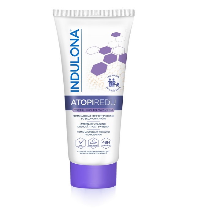 Pečující tělový krém INDULONA ATOPIREDU byl speciálně vyvinutý tak, aby poskytl pokročilou péči projevům extrémně suché pokožky. Vysoce hydratační a zklidňující složení bez parfemace pomáhá poskytnout komfort citlivé pokožce se sklonem k atopii. Okamžitě pomáhá zmírnit vysušení, drsnost a pocit svědění. Se 45 % vazelíny a 3,8 % lanolinu poskytuje pokožce dlouhotrvající ochranu, pomáhá obnovit její ochrannou bariéru, hydratuje a tím napomáhá hojení suché pokožky a zanechává ji hydratovanou po dobu 48 hodin. Vhodný pro každodenní použití. Pro celou rodinu, vhodný pro miminka. Pro všechny typy pokožky. Bez parfemace. Dermatologicky testováno. Testováno pod dohledem pediatra. Vyvinuto s cílem minimalizovat riziko alergických reakcí.