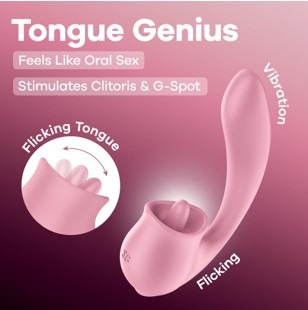 Díky flexibilnímu jazyku z celosilikonového materiálu a zasunovatelnému tělu stimuluje dva body rozkoše najednou. Tento vibrátor v podobě jazyka kombinuje pokročilou technologii se smyslným designem a přináší intenzivní zážitky, které můžete ovládat. Ať už pro vnější nebo vnitřní potěšení – tato erotická pomůcka přesně ví, co má dělat. S 8 režimy lízání a 8 vibračními programy stimuluje Tongue Genius současně klitoris a bod G.