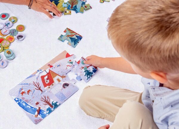 Zábavná vzdělávací hra pro děti od 2 let, která je provede jarem, létem, podzimem i zimou. Každé období tvoří velké puzzle o 10 dílcích a 8 tematických žetonů s motivy, které mají děti za úkol správně přiřadit k obrázku. Hra je určena zejména pro rozvoj pozornosti, slovní zásoby, logiky a jemné motoriky. Doporučená cena 399 Kč.